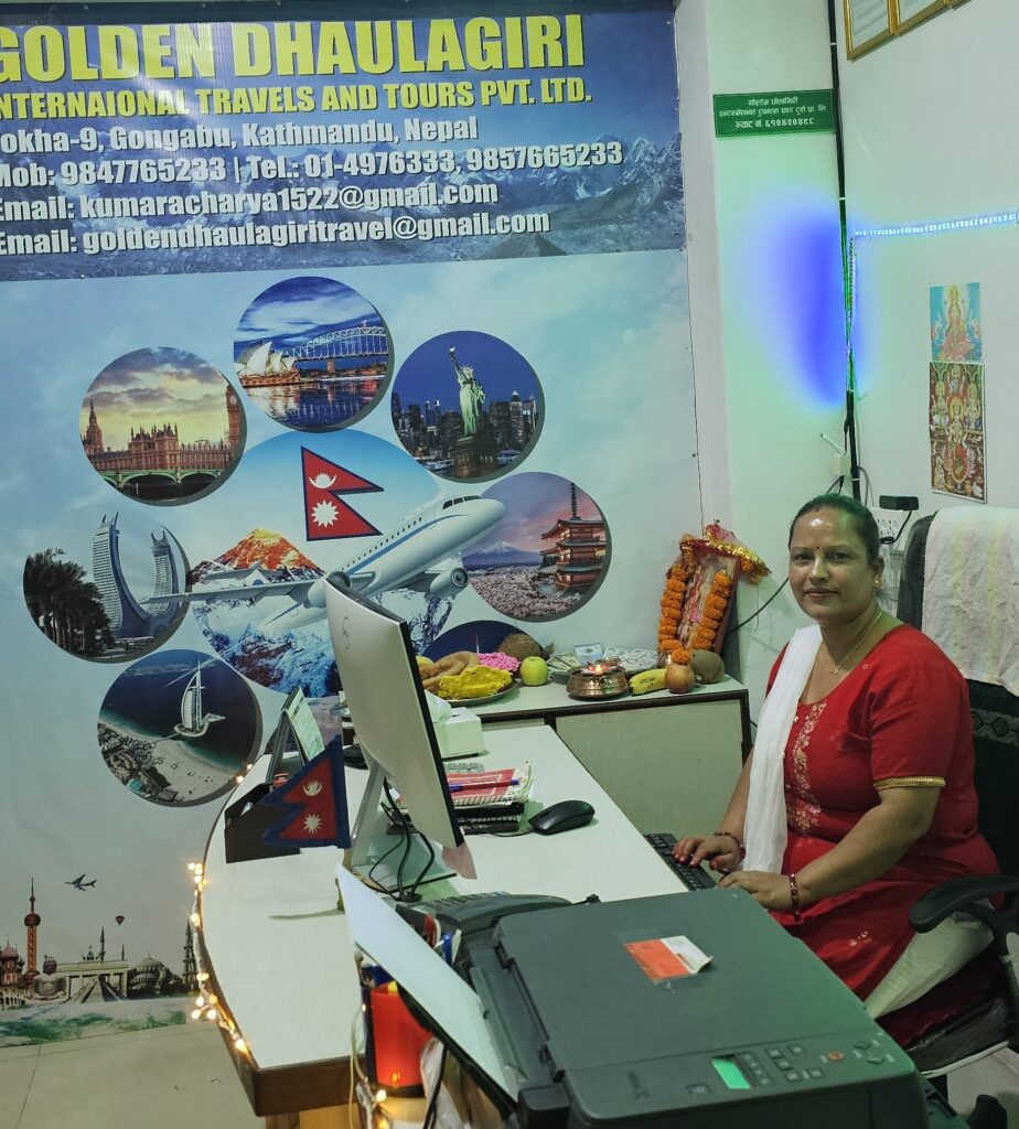 As an Visa specialist at Golden Dhaulagiri International Tours and Travels, Saroj Himalaya plays a crucial role in managing visa applications and assisting clients with their travel plans. His expertise has helped many individuals successfully secure visas and travel abroad with ease.